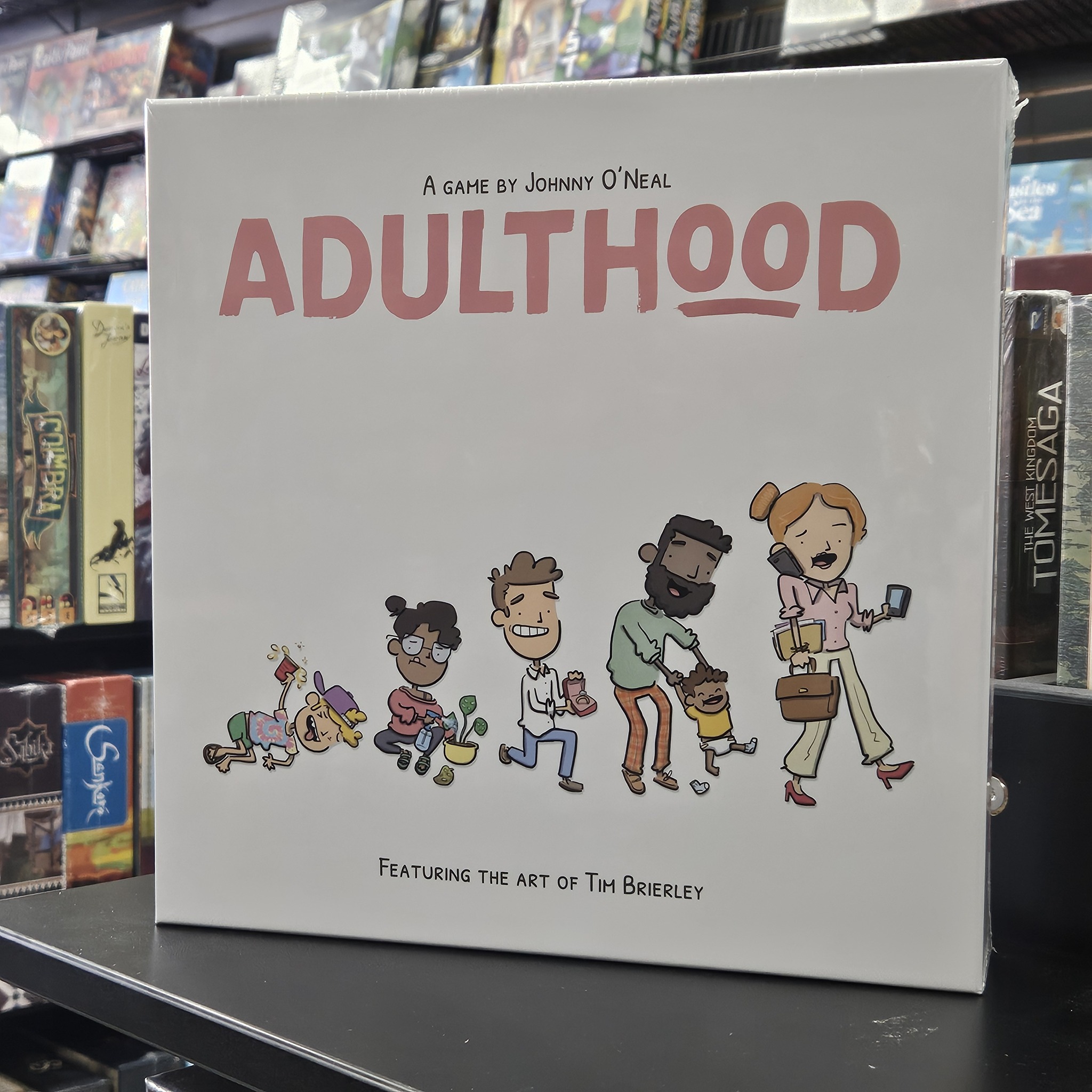 Live your best life in Adulthood! Every turn, this game challenges 1-4 players to spend Time and Energy to generate Money, Happiness, and positive Impact. Choose a Career, seek out Experiences, find a Partner, and try to spend time on Wellness while dealing with unexpected Life Events. Featuring the art of Tim Brierly, Adulthood highlights the joys and absurdity of everyday life.