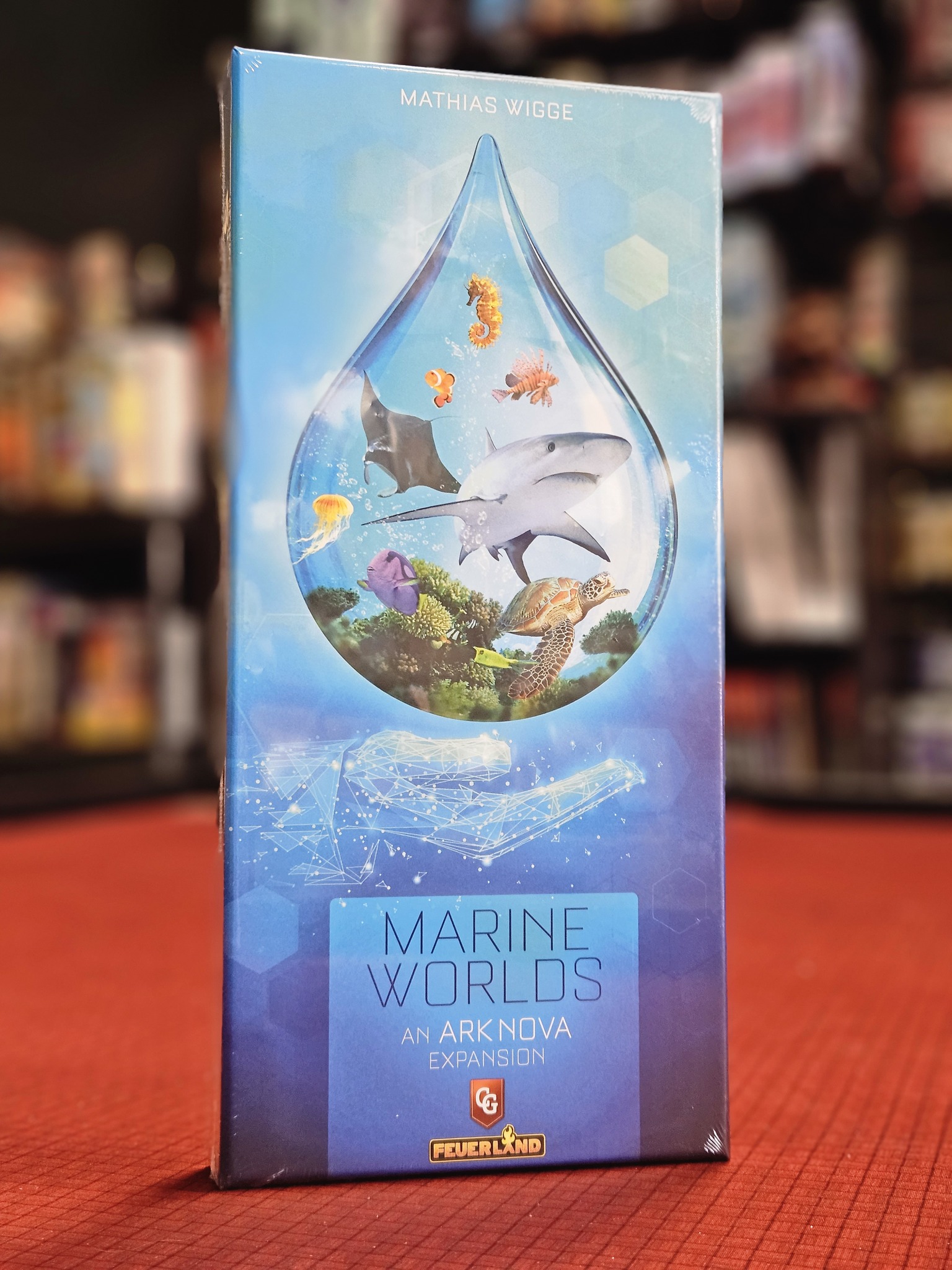 Ark Nova: Marine Worlds, an expansion for Ark Nova, introduces multiple new elements to the game, such as sea animals that each have to be played in new special enclosures that must be built adjacent to water.