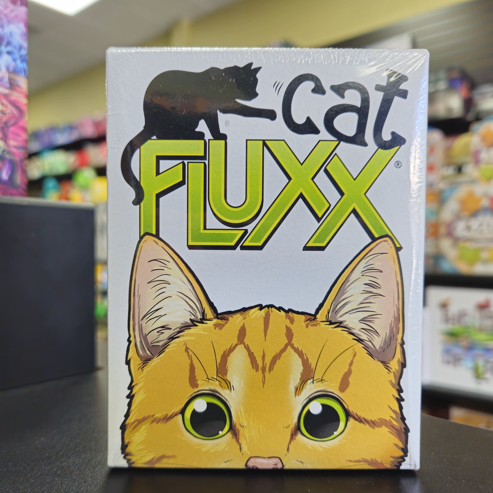 Cat Fluxx features felines and familiar Fluxx gameplay, with the game featuring nine specific cat breeds, cat silhouettes for some goals, part of a human, a laser pointer, new actions such as “The Zoomies” and “Objects on Shelves Must Be Pushed Off”, and new rules such as “Live Cat Bonus”, which has you draw an extra card each turn while a cat is in the room.