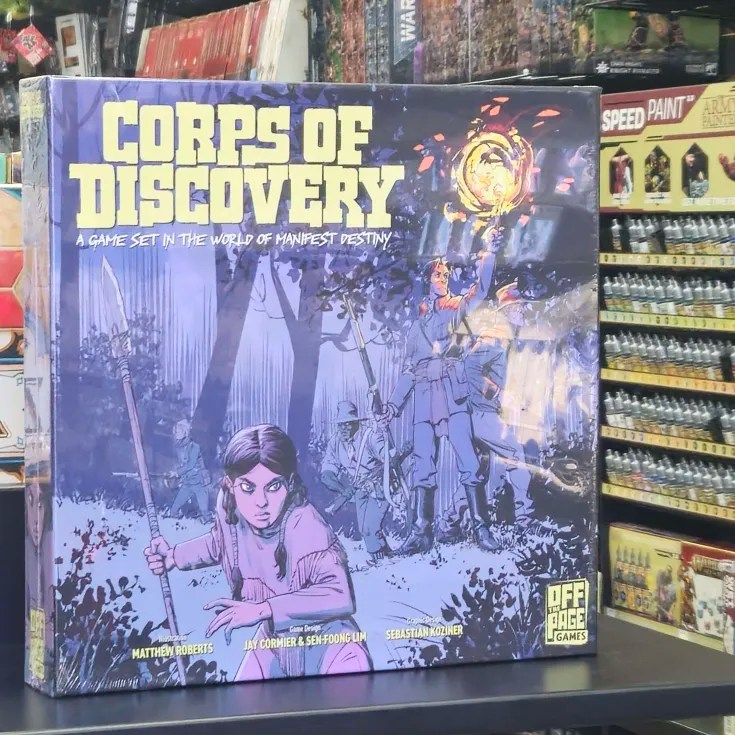 Corps of Discovery: A Game Set in the World of Manifest Destiny is a co-operative deduction game in which players each take the role of one of the crew on the expedition and set out to explore the land. The game board allows for different maps to be inserted into it, so you have many adventures ahead of you.