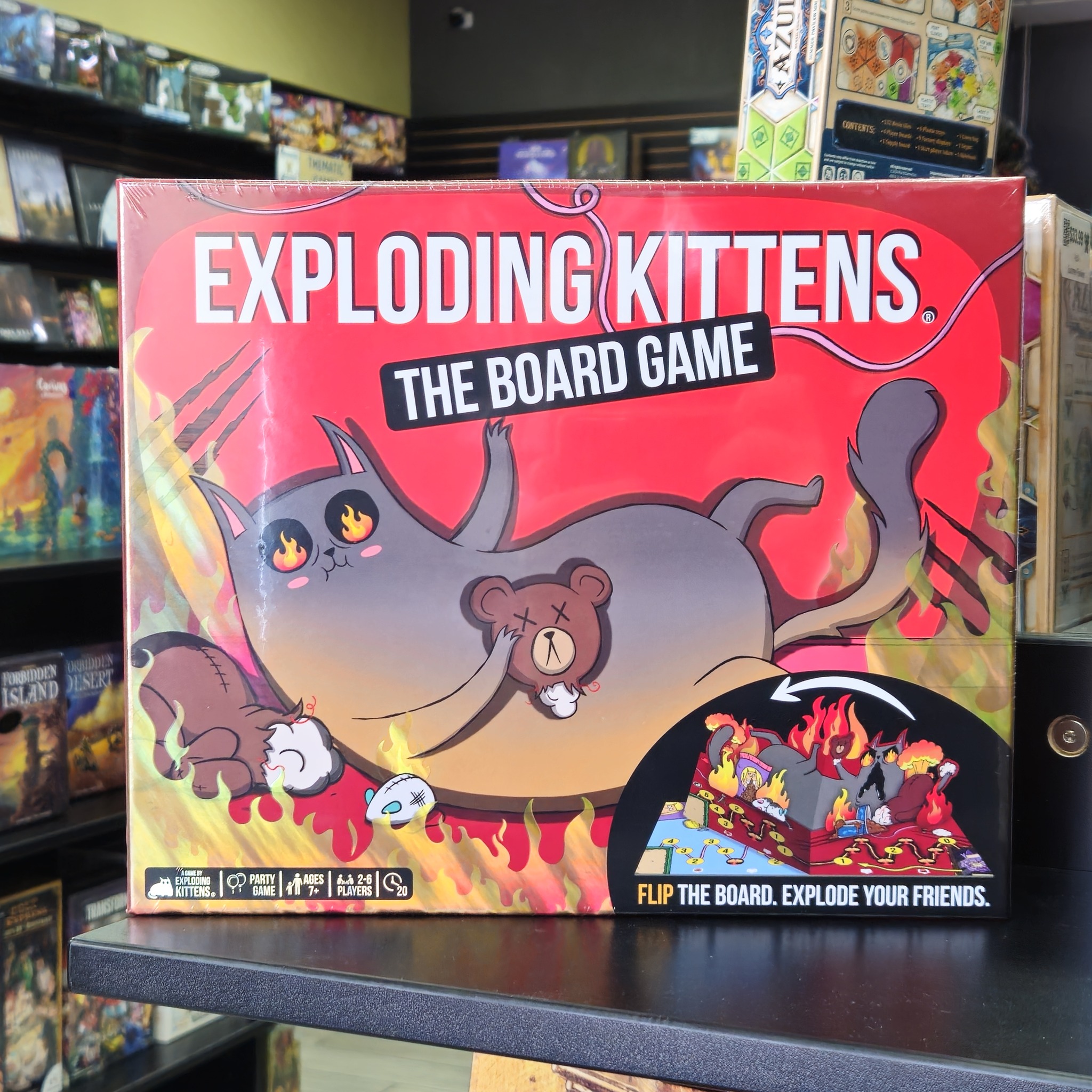 There’s never been a board game like this before! Your goal is to make it to the end of the board without landing on the Exploding Kitten. To do that you’ll play cards and plot strategies to sabotage your opponents. But don’t get too cocky because one wrong move can cause the board to flip. This completely transforms the board to reveal a new path where every move could be your last. You have to think fast, form alliances, play smart, and avoid the Exploding Kittens at all costs.