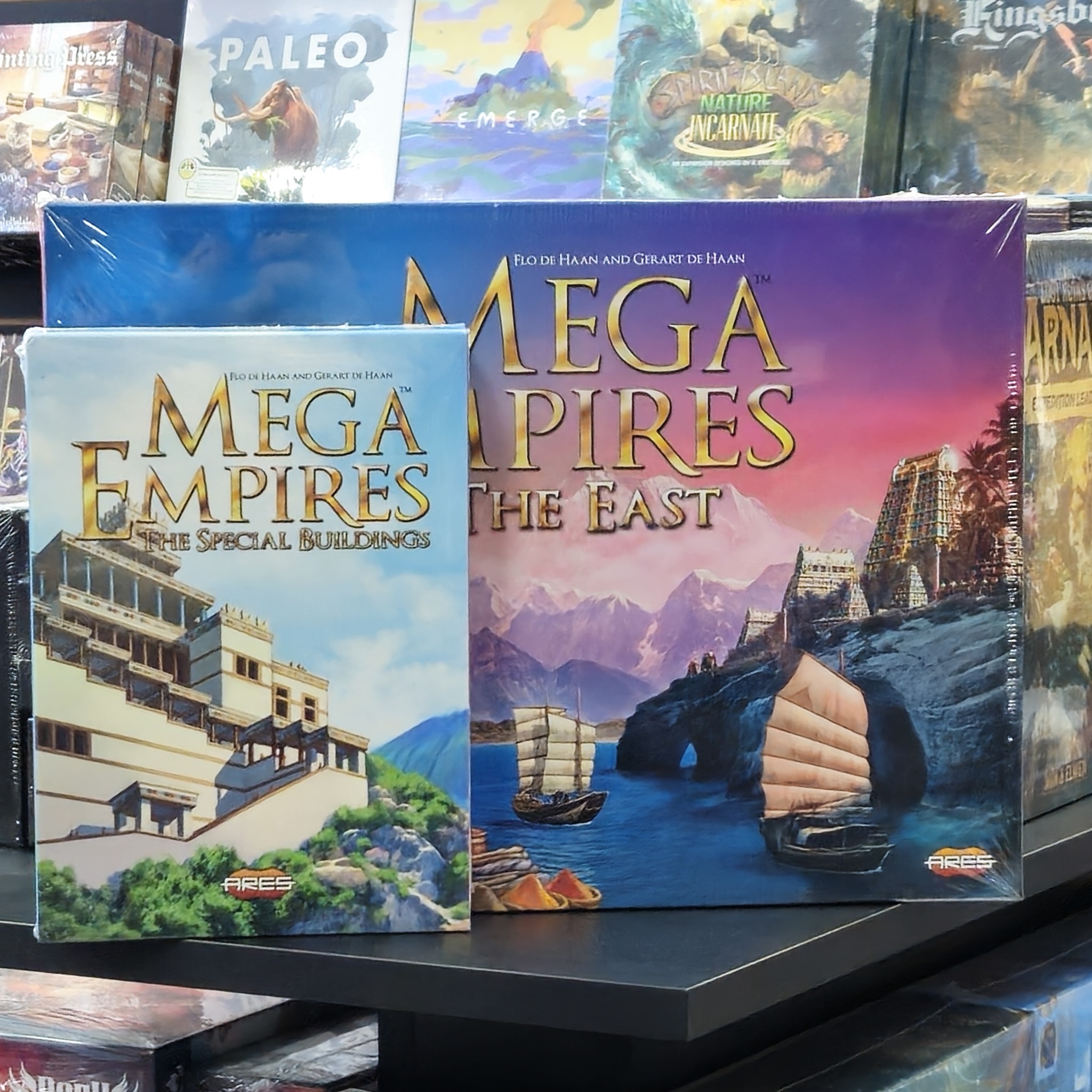 Mega Empires: The Special Buildings (2024) is an expansion set that provides additional flavor to the game through 18 miniatures of ancient buildings historically associated with each of the civilizations in the game. These buildings can be built on the map board and provide additional benefits in play and victory points to their controller.