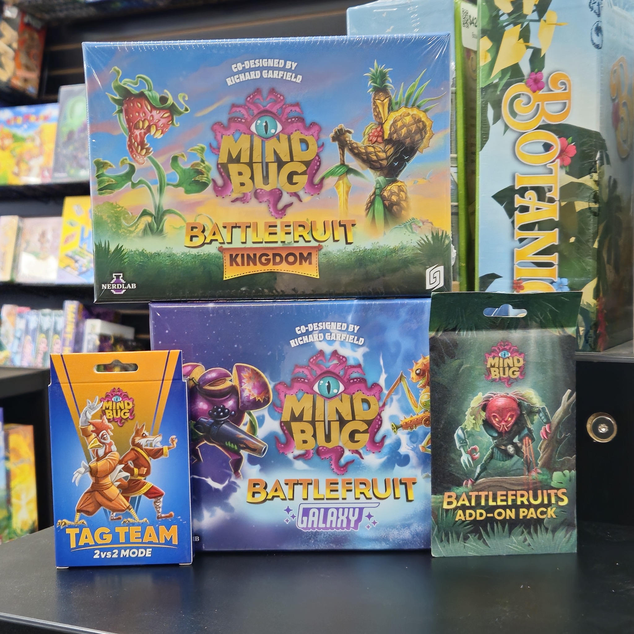 Mindbug: Battlefruit Kingdom is a stand-alone game of Mindbug about a Kingdom of Pineapple Paladins fighting the mighty Lychee King. Plant your fruit and vegetable creatures, protect them from your opponent, and Harvest their crazy abilities. Being a stand-alone game, Mindbug: Battlefruit Kingdom can be played on its own, or mixed with any other Mindbug sets.