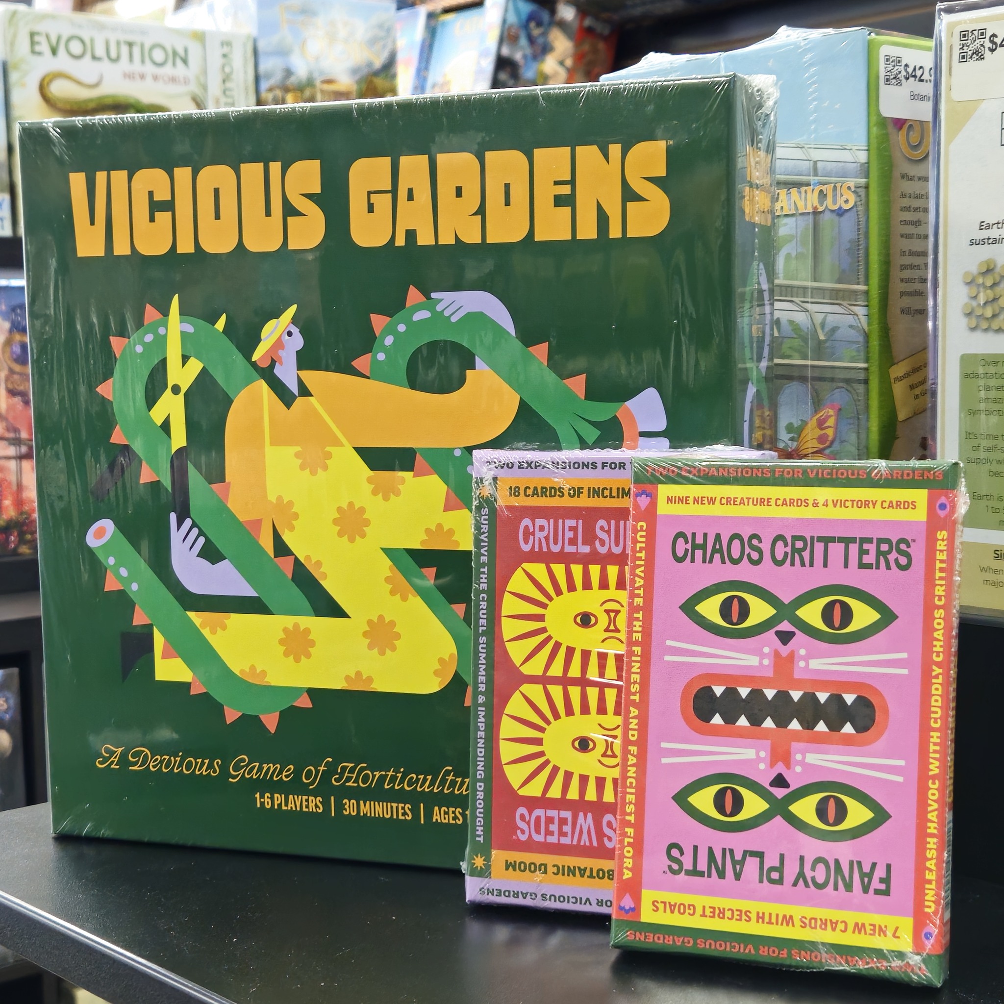 Vicious Gardens is a card game that combines the joy of gardening with the thrill of being a total jerk. Strategically cultivate your garden, harvest plants, and sabotage others in a competition to become the Official Master Gardener.